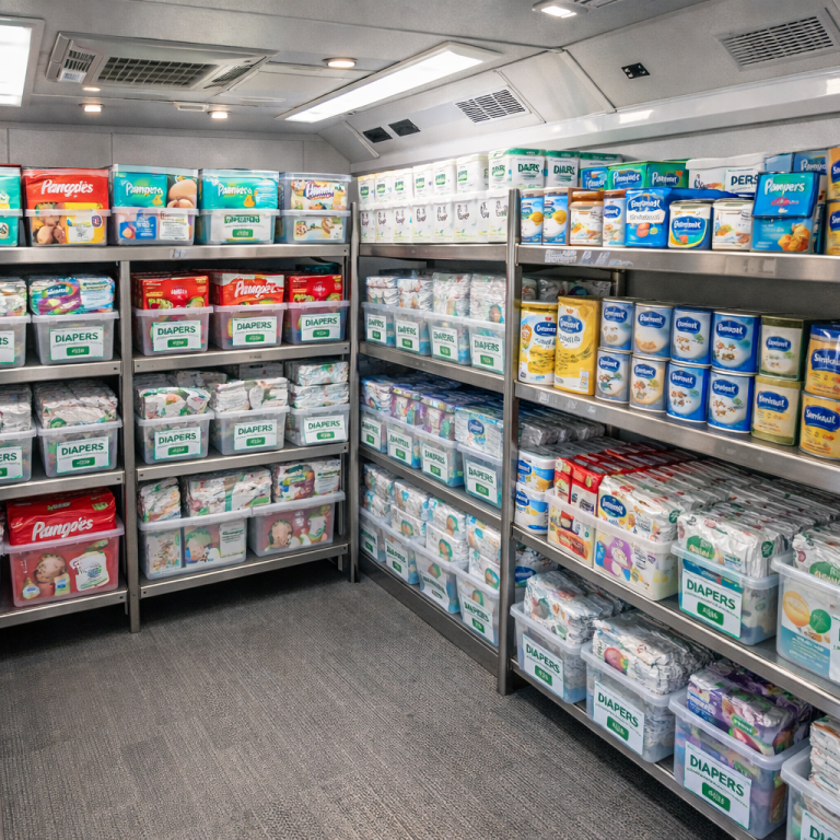 Distribute diapers, wipes, and infant supplies to families. - Mobile Cooling & Warming Stations